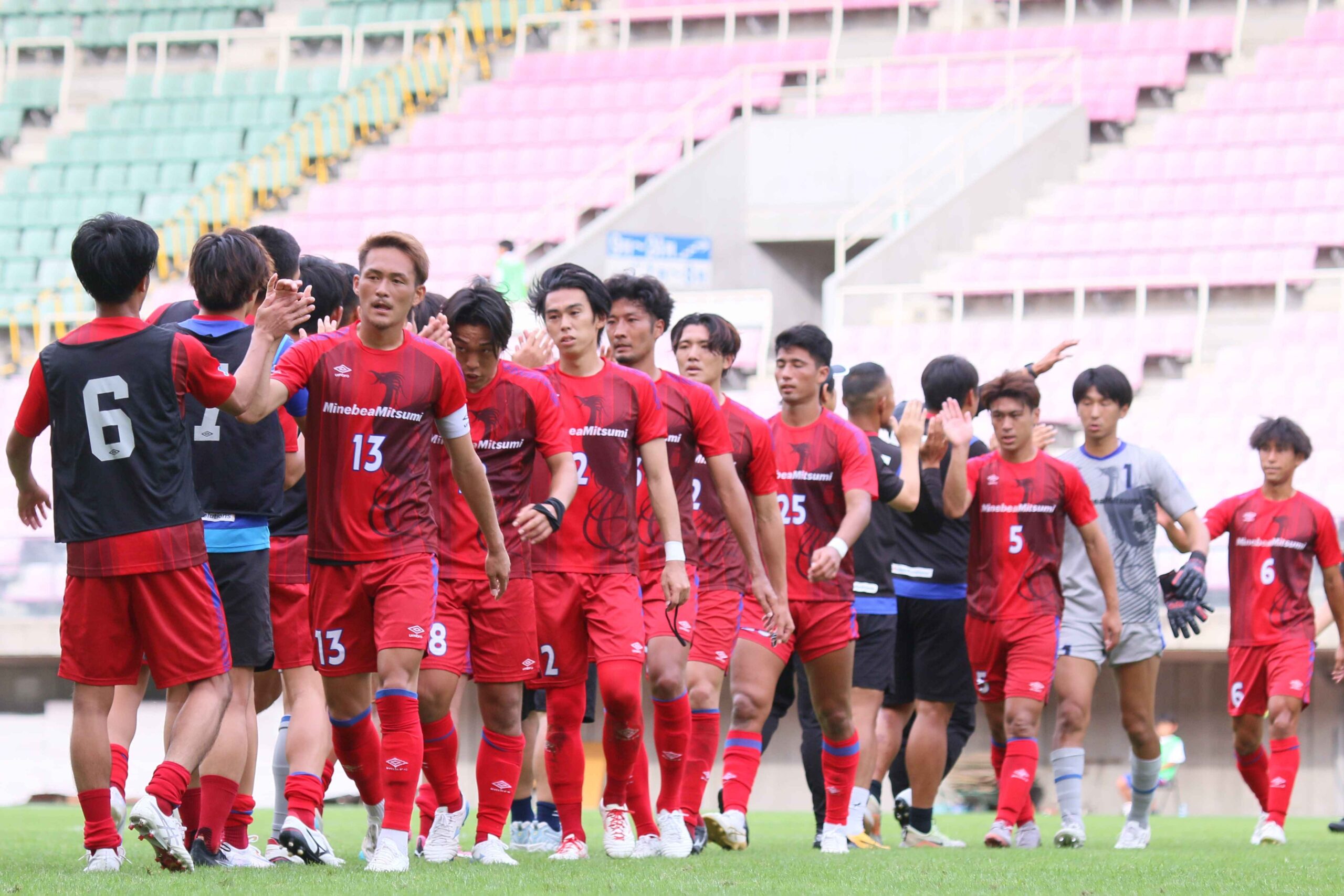 応援ありがとうございました。前半2失点し苦し状況の中、後半気持ちを新たに最後まで諦めることなくハードワークした結果、同点に追いつくことができました。残り8試合負けられない、勝点を取るしかない状態が続きます。今日の後半のような試合で打開できるように頑張っていきます。引き続き応援よろしくお願いします。
