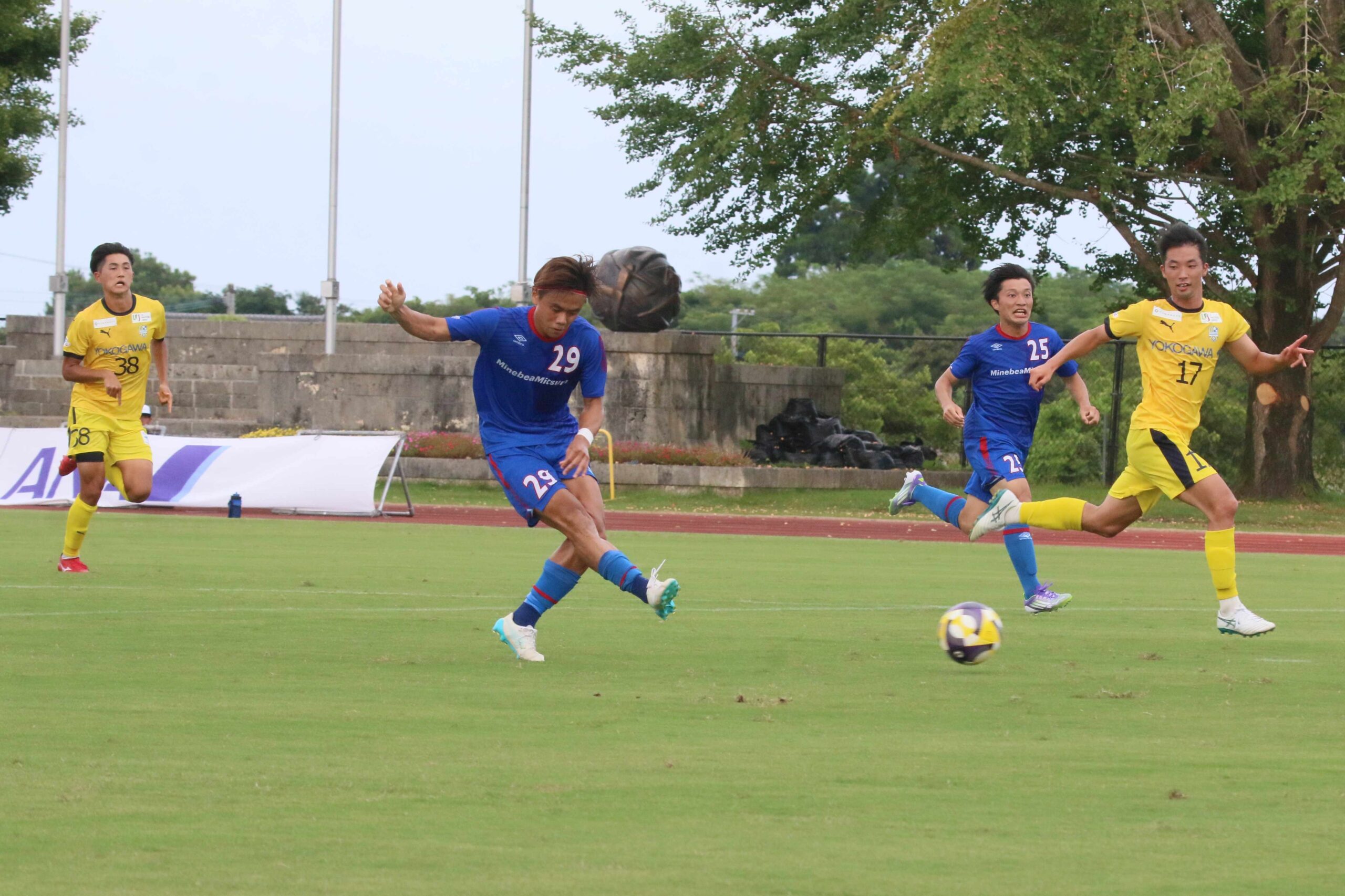 応援ありがとうございました。運営にご協力いただいた皆さま残暑が厳しい中ありがとうございました。3連敗をしない為に負けられない一戦で勝利することができ良かったです。早い時間帯に連続得点でき、選手全員が最後まで諦めず戦い抜きました。終了間際に失点し無失点で終われなかったことは課題が残りますので、日々の練習を通して改善していきます。次節はアウェイ戦ですが、しっかり勝ち点を積み上げられるようチーム一丸となりたたかっていきます。引き続き応援よろしくお願いいたします。
