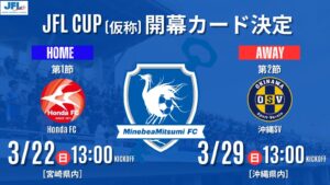 JFLよりJFL CUP(仮称)16チームの第1節、第2節及びホーム開幕戦日程の発表がありましたので、お知らせいたします。